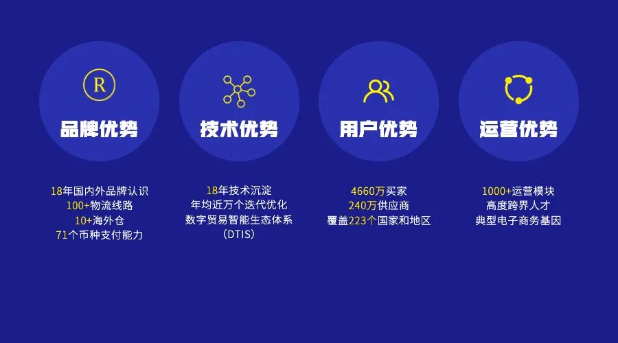 敦煌网在品牌优势、技术优势、运营优势、用户优势四大维度上,已建立起难以复制的竞争优势